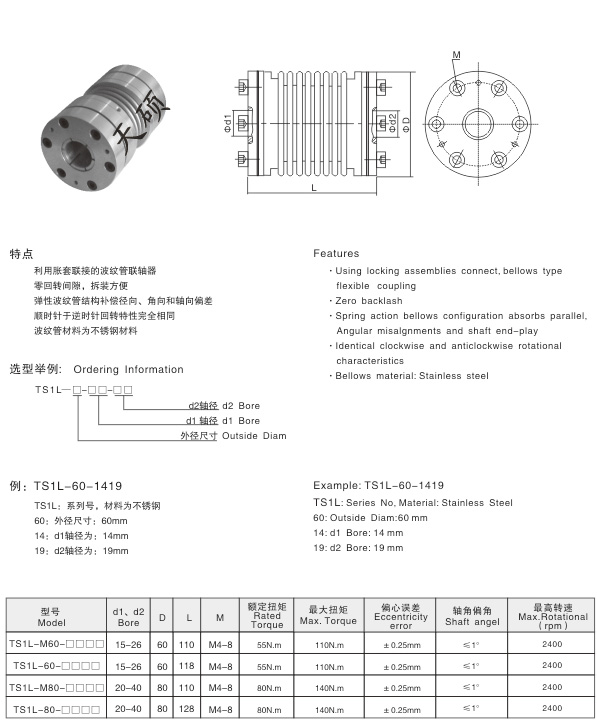 TS1L型波紋管聯軸器產品介紹: